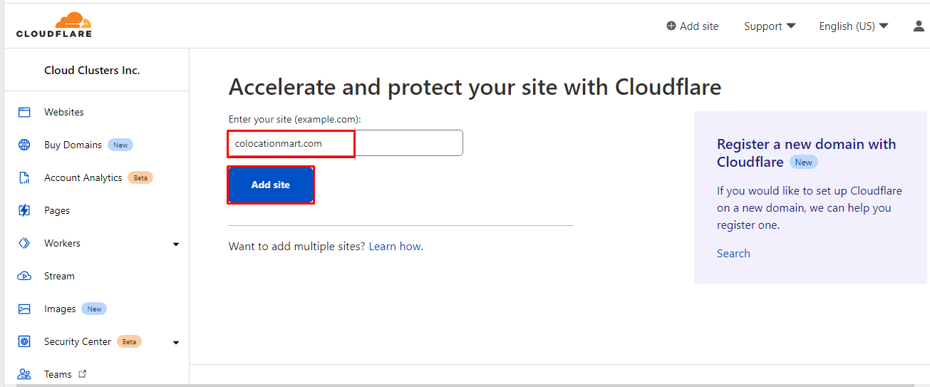 Add your website domain to Cloudflare.