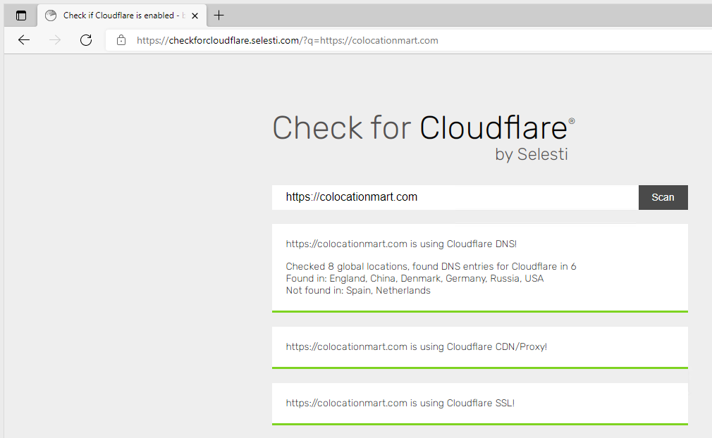 You can verify if CDN is enabled for your domain at https://checkforcloudflare.selesti.com/