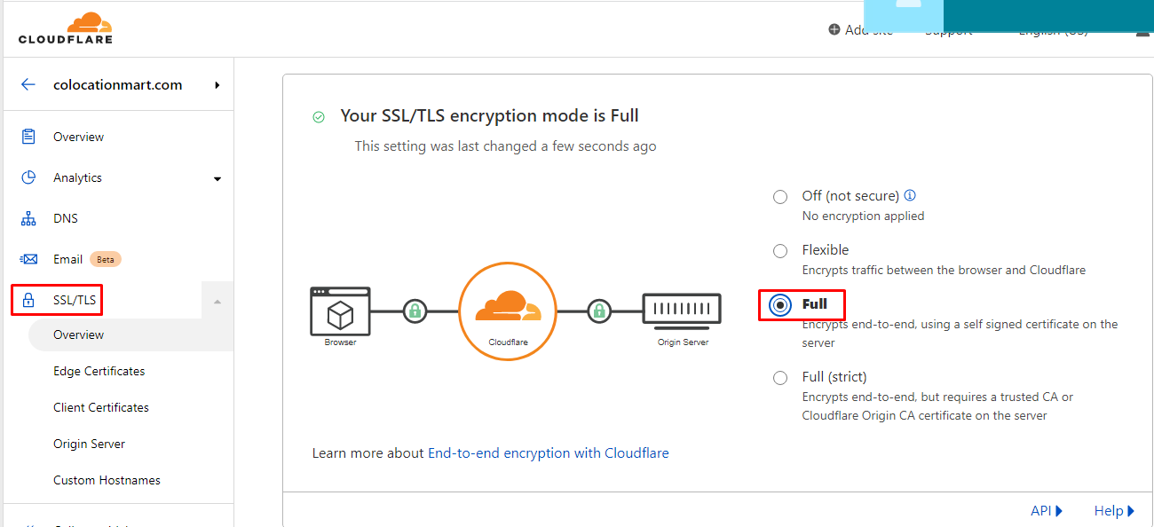 Enable the Full mode for your website SSL/TLS encryption.
