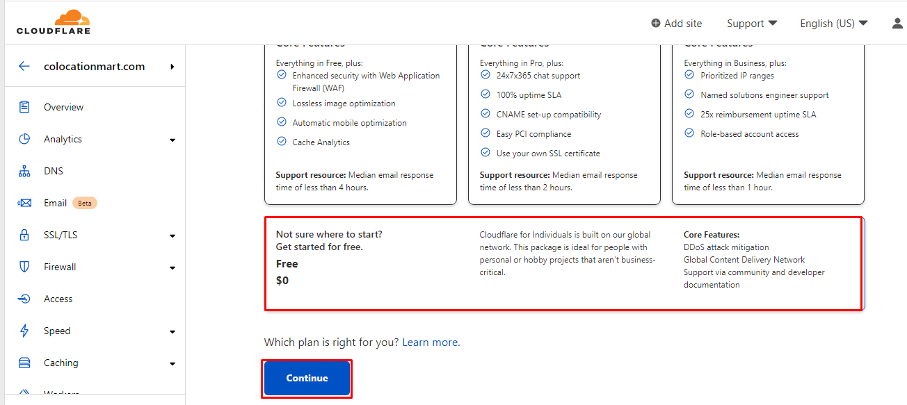Select a CDN plan that matches your needs. If you could not decide at the moment, choose the free plan to get started.