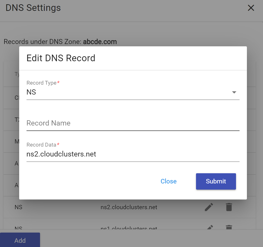 Cloud Clusters offers name servers to manage DNS records for your domain. If you are new to this, please follow the steps below.
